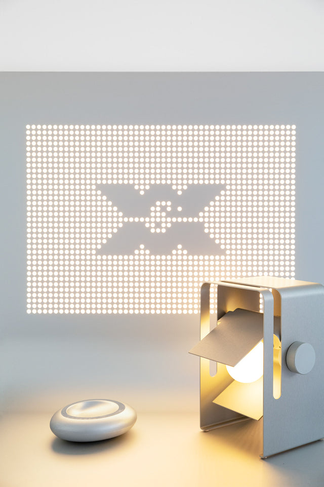 The calm lines and the purity of the shapes: this silky “skin” soften the light and brings the metal to life.